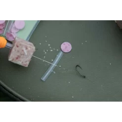 The Korum Meat Stop system has been designed to improve the durability of meat hookbaits, providing a specially designed bait stopper with a number of unique characteristics.